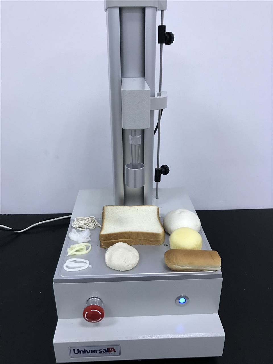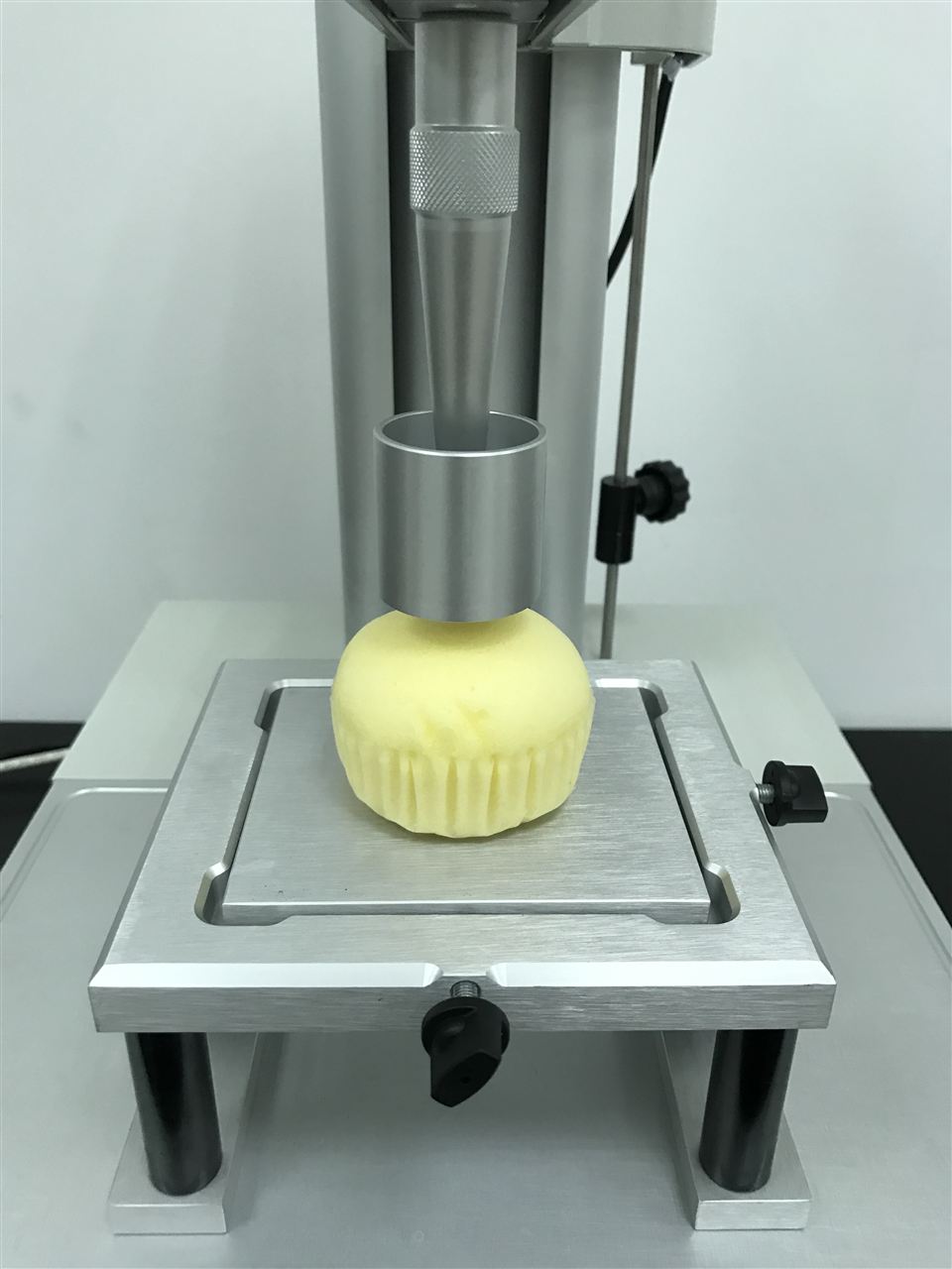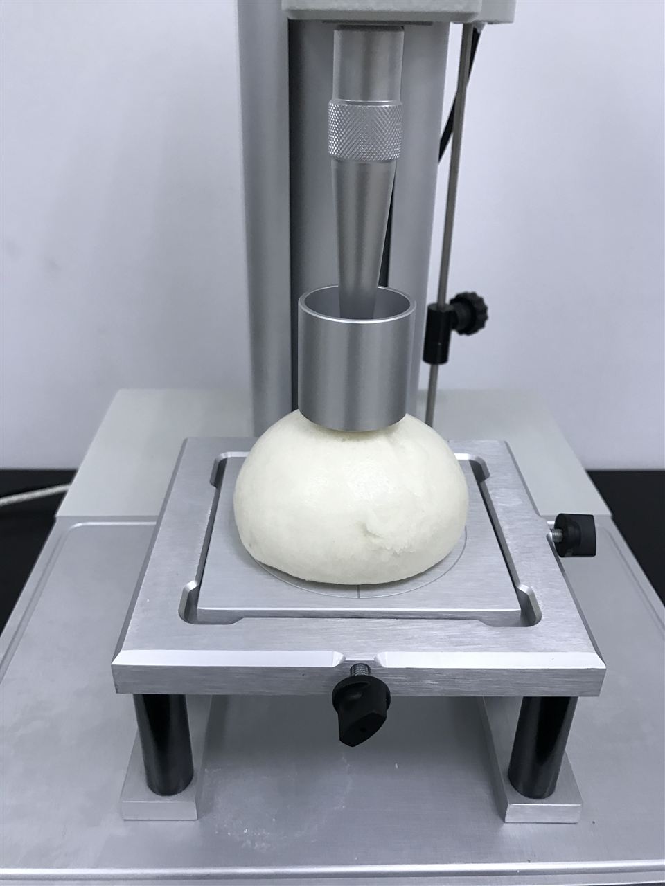 (1)P/DP面团准备装置: 样品放置在装置尖柱转移空气,平坦的表面是应用扁平化活塞。6mm柱形探头是用来测量面团的硬度和粘稠度。