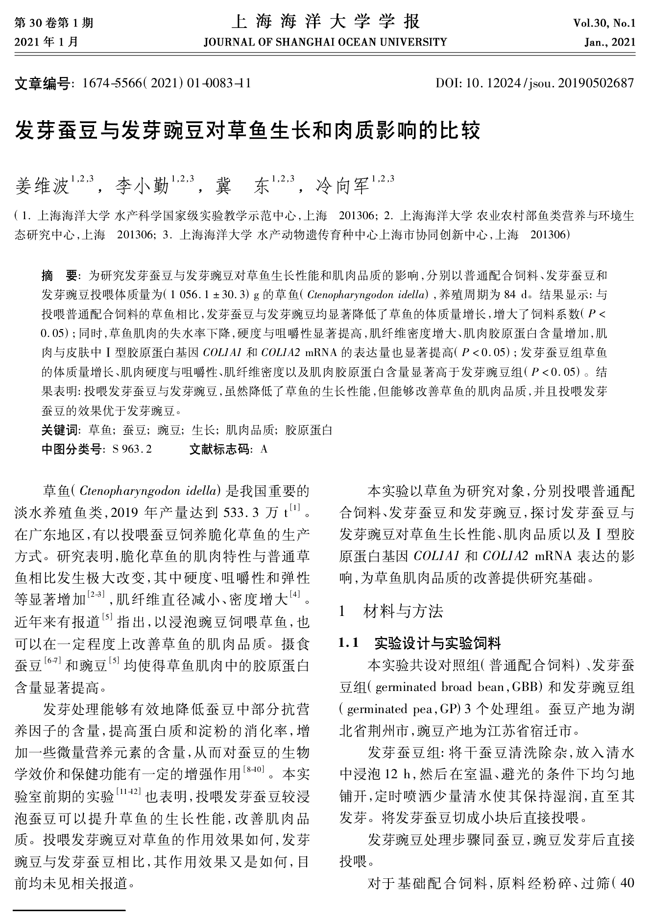 全文下载链接:发芽蚕豆与发芽豌豆对草鱼生长和肉质影响的比较