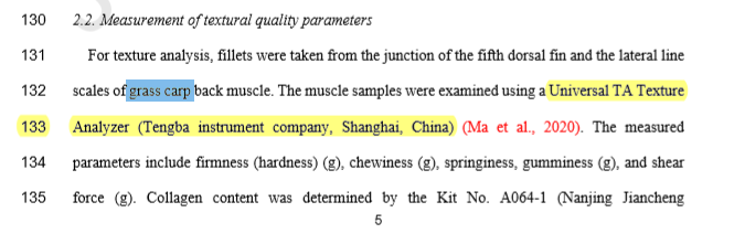 在该研究论文中,研究人员利用上海腾拔的Universal TA研究型质构仪用于测定草鱼肌肉的硬度、弹性、咀嚼性和剪切力。