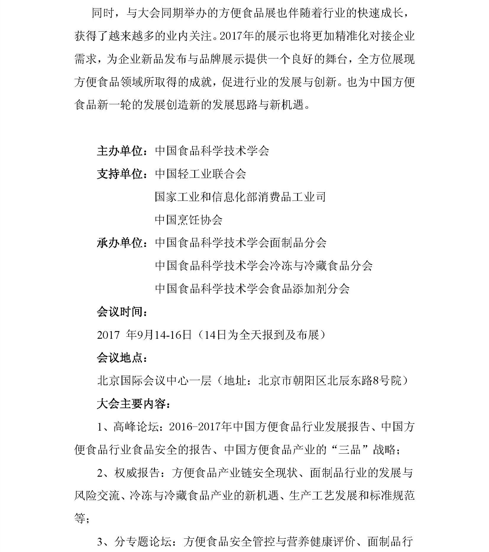 关于召开第十七届中国方便食品大会暨方便食品展的通知
