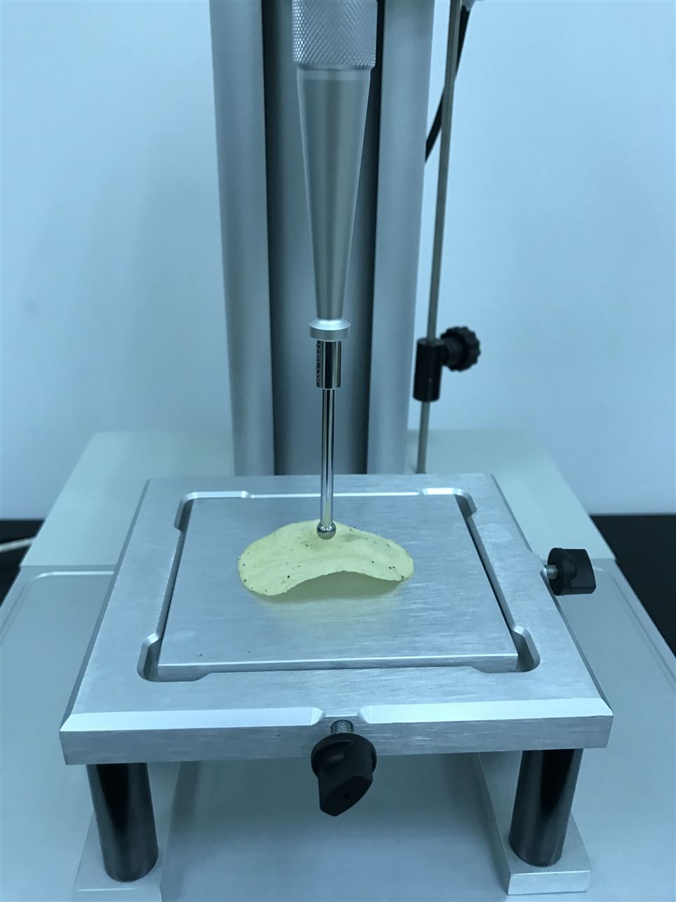 脆度测试探头以球形探头的穿刺测试薯片、饼干或膨化等食品的酥脆性(fracturability)进行测试。