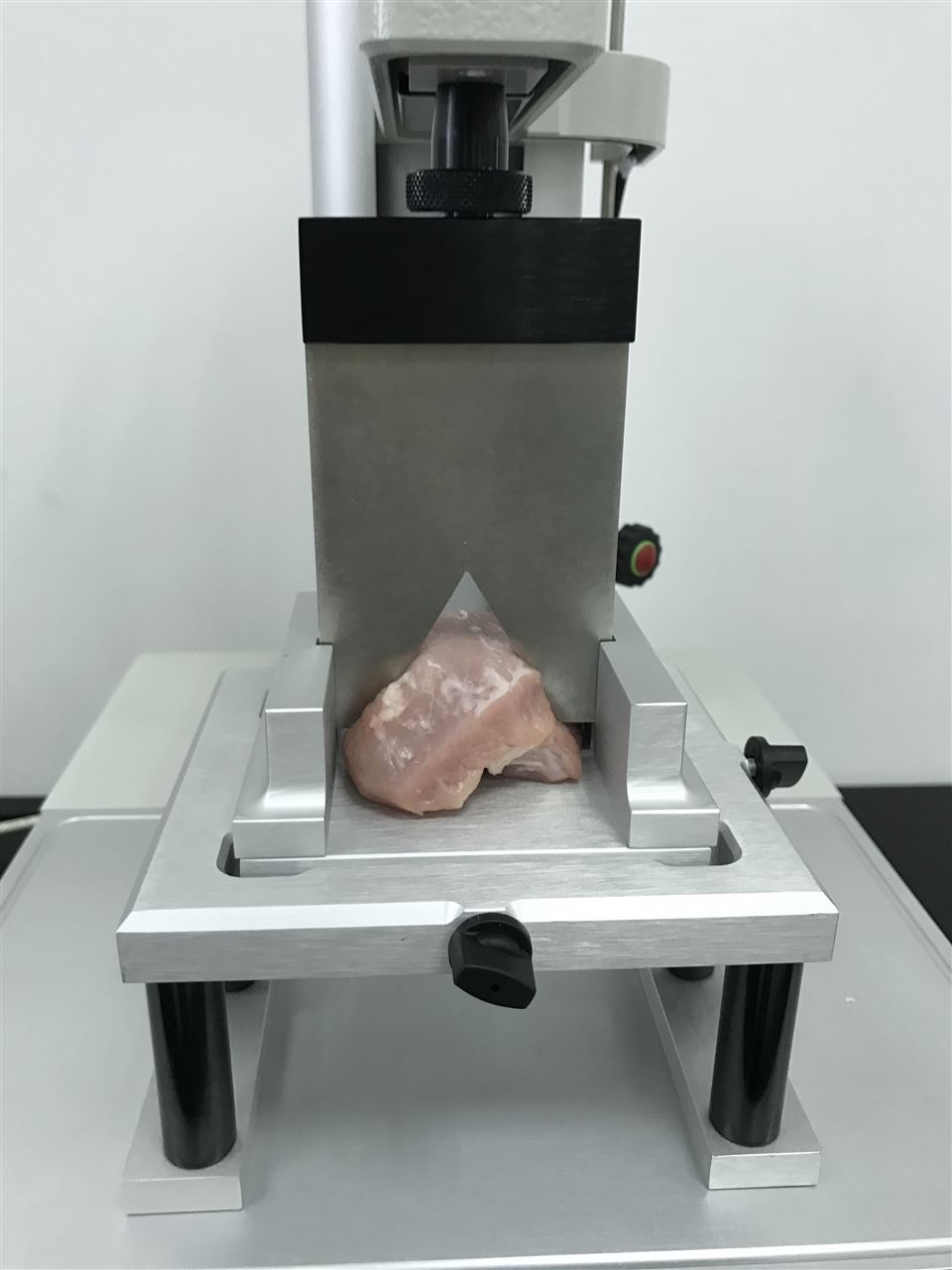 剪切刀具被广泛用于评估家禽肉的嫩度,已成为行业的标准测试方法。刃口装置包括Warner Bratzler切刀和斜口、直角切刀,侧边可限制形变。用于肉制品质的测试,可测试鲜肉、熟肉、香肠等的坚实度(firmness)、肉嫩度等。符合农业标准NYT 1180-2006 肌肉嫩度的测定